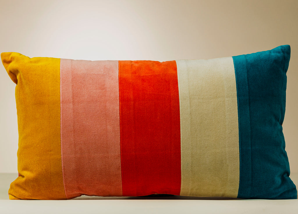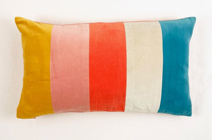 A Modern collection of mid-century inspired plush velvet pillows in retro colors and simple colorblocks. Hand sewn in patch-work construction, these pillows are DOUBLE SIDED with velvet on both sides and a contrast color on the back. You can use the color-block side for a bold look and change to the solid color when you want something more mellow. Or mix-and match for new combinations everyday.