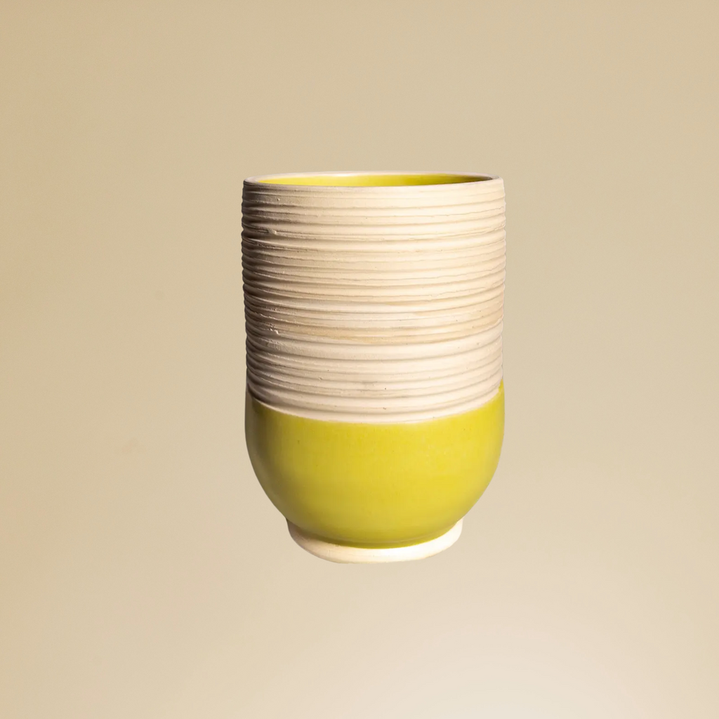 Handmade by ceramic artist Sherrod Faulks in Portsmouth, VA. Vases are such a broad genre of object that he simply never run out of new ideas to try. For this vase, he doubled-down on the DEEP BLACK design language and selected season-smart glaze Oasis to soften the ultra-sleek form. This vase is one of a kind. A one of one.