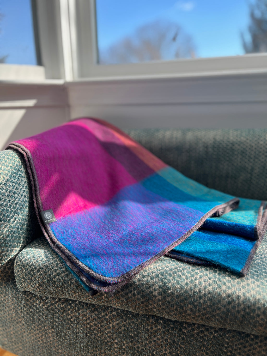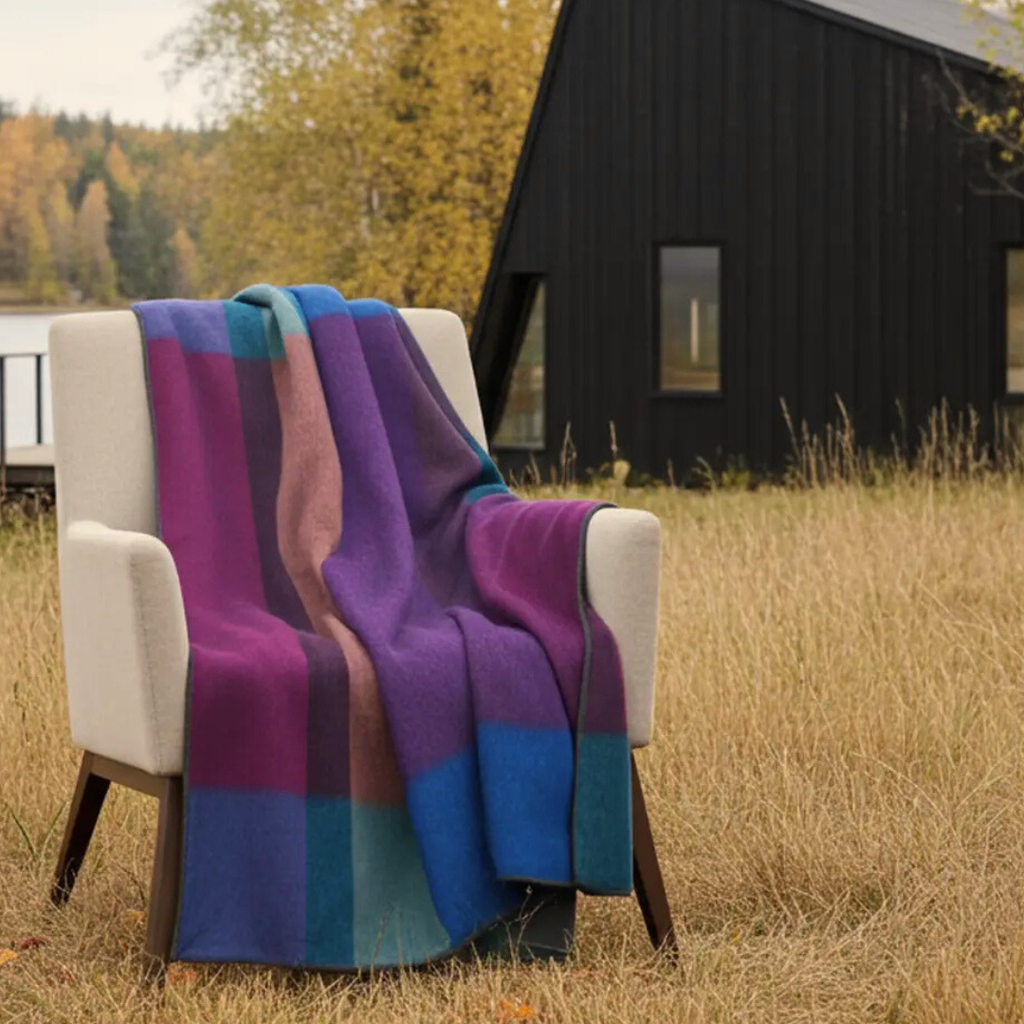 The Grapevine Alpaca Throw features a rich blend of plum, wine, and slate tones woven into a bold, geometric plaid. Deep and dramatic, this palette adds depth and contrast to curated interiors while maintaining a soft, structured feel. Crafted from a premium alpaca blend, this throw offers lightweight warmth and durability—ideal for layered home styling.