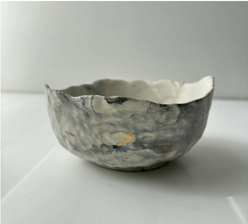 The Daso Bowl - a textured bowl with uneven edges, crafted meticulously from concrete. Its surface boasts a captivating texture, with organic irregularities that add character and charm to its design. Each edge is unique, reflecting the artisanal nature of its creation. This bowl is not just a functional piece but also a work of art, perfect for adding a touch of elegance to any space.